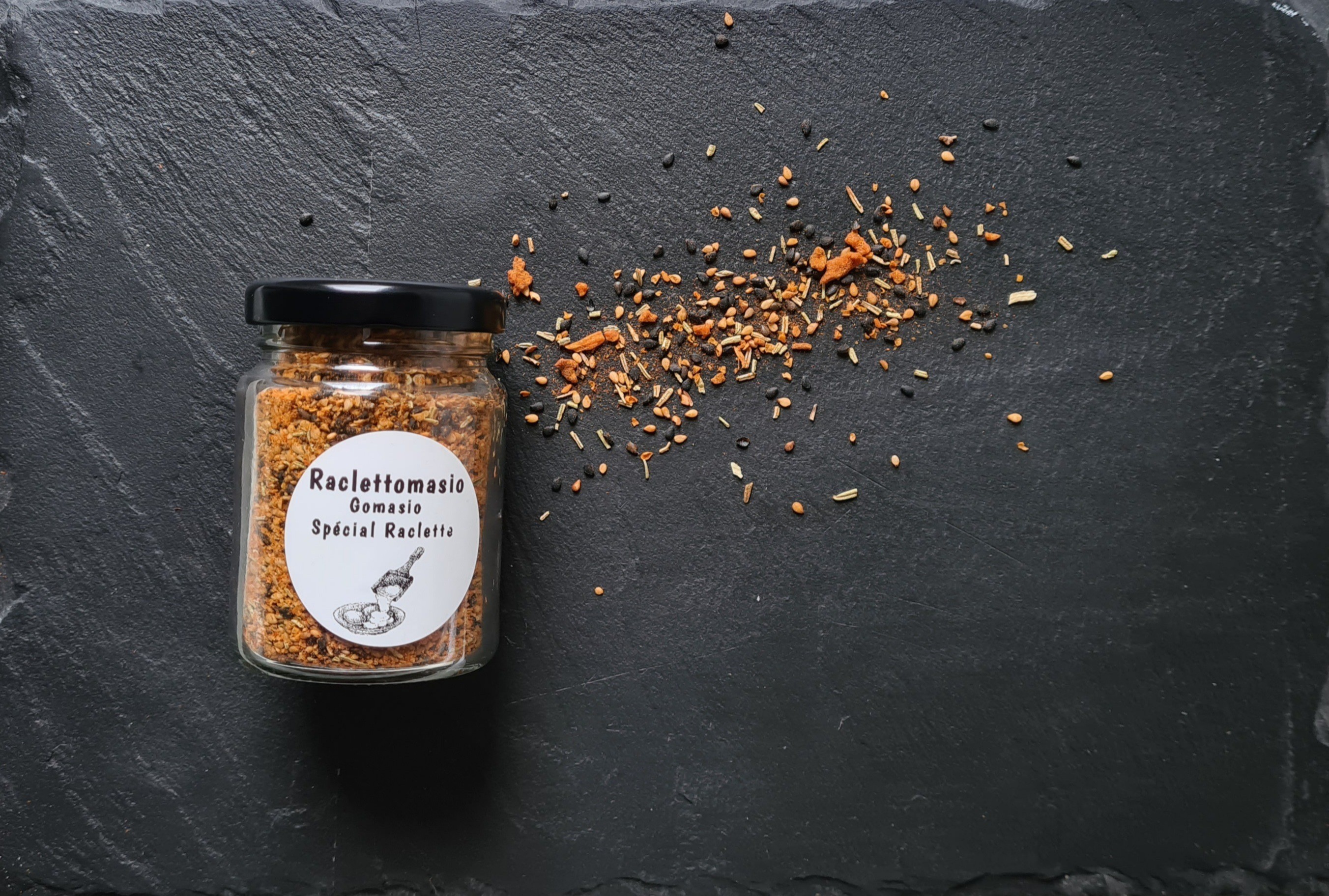 Ce gomasio spécial raclette, équilibre la douceur des graines de sésame toastées avec des notes aromatiques du romarin et la profondeur du parika fumé , ail et Oignon frit.